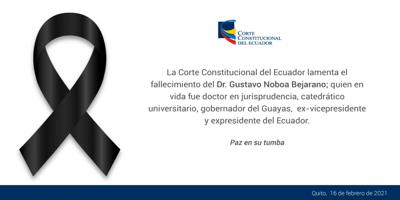 La Corte Constitucional del Ecuador expresa su más profundo pésame a los familiares y amigos del Dr. Gustavo Noboa Bejarano.